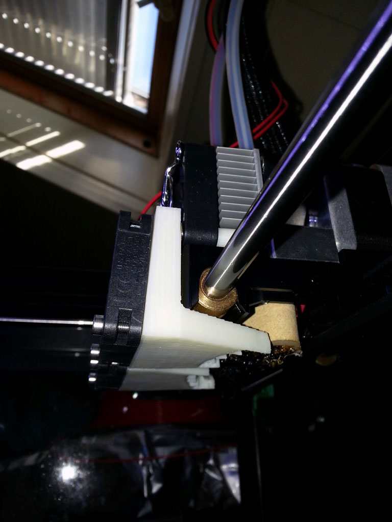 Der Makerbot Replicator 2x hat Probleme damit, PLA zu drucken. Das liegt hauptsächlich daran, dass der vom Replicator 2 bekannte Filament-Lüfter nicht vorhanden ist. Auf thingiverse gibt es dazu ein Upgrade-Kit, mit dem man einen Filament-Fan (oder besser gesagt sogar 2) anbringen kann.